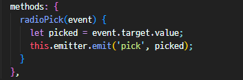 - 데이터를 보낼 컴포넌트의 methos 안에 emitter 함수 작성