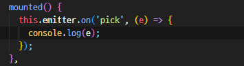 - 데이터를 받을 컴포넌트의 mounted 안에 emitter 함수 작성