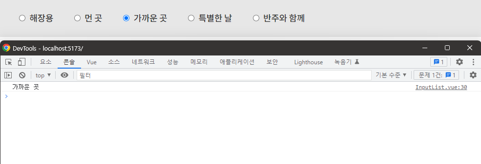 가까운 곳을 체크 하면 value가 그대로 출력 된다.