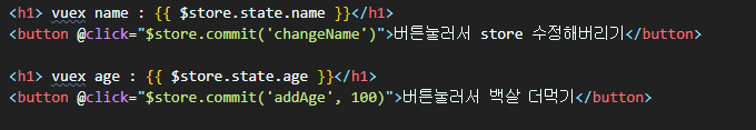 <button @click="$store.commit('addAge', 100)">버튼눌러서 백살 더먹기</button>