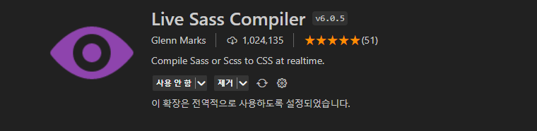 vscode 익스텐션 검색창에서 sass를 입력 하면 다음과 같은 확장프로그램을 설치할 수 있다.