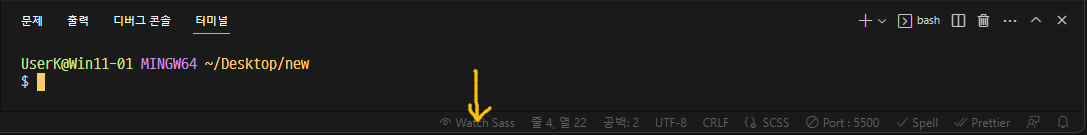 설치 후에, 화면 하단에 있는 whatch Sass 버튼을 눌러준다