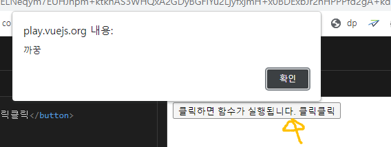 <button @click="samplefunction"> 클릭하면 함수가 실행됩니다. 클릭클릭</button>