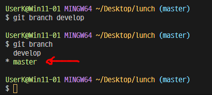 git branch develop // 만들어라 브랜치. develop 이라는 이름을 가진.