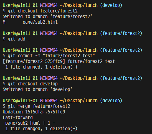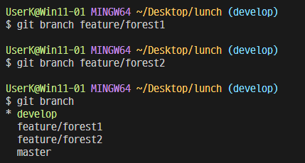 (develop) git branch feature/forest //깃 브랜치 작업자용으로 생성