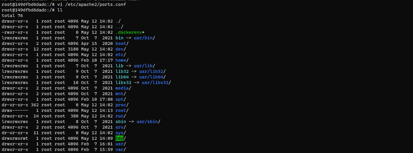 docker exec -it 컨테이너ID bash //컨테이너 접속 (ex. docker exec -it 149dfbd6dadc bash)